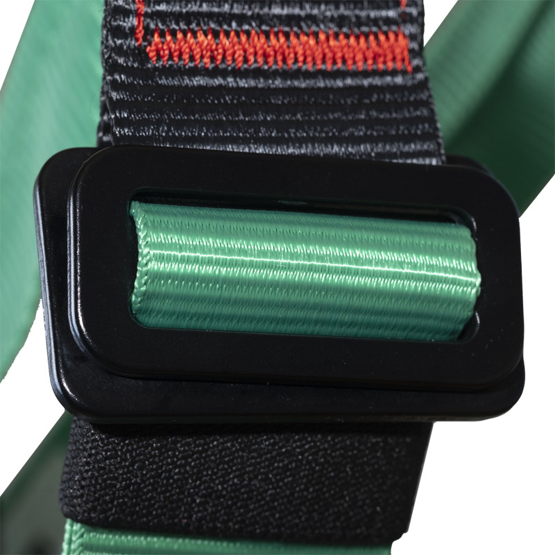 Antracit: cele mai vizibile părți ale hamului.Roșu: cusături de siguranță și bucle pentru echipament.